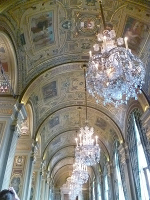 This Sunday, we took to the streets of Paris to enjoy the last day of the journées de patrimoine weekend, during which one can visit most museums and government owned buildings. We started the afternoon with the Jardin des Plantes but the greenhouses were not participating in the events so we wandered elsewhere, visiting the majestic Bibliotheque Sainte Genevieve and Hôtel de Ville, Paris' city hall. Both visits were equally entertaining - the library made me wish I was a student all over again, brought back memories of when I used to work in a library and got me thinking that maybe I should spend some time there; Hôtel de Ville took my breath away with the lavishly ornate decoration and breathtaking chandeliers hanging from literally every inch of the ceiling! Mr. Mayor, I'd like very much to be invited to a party chez vous! It was the perfect way to spend the last Sunday of summer.